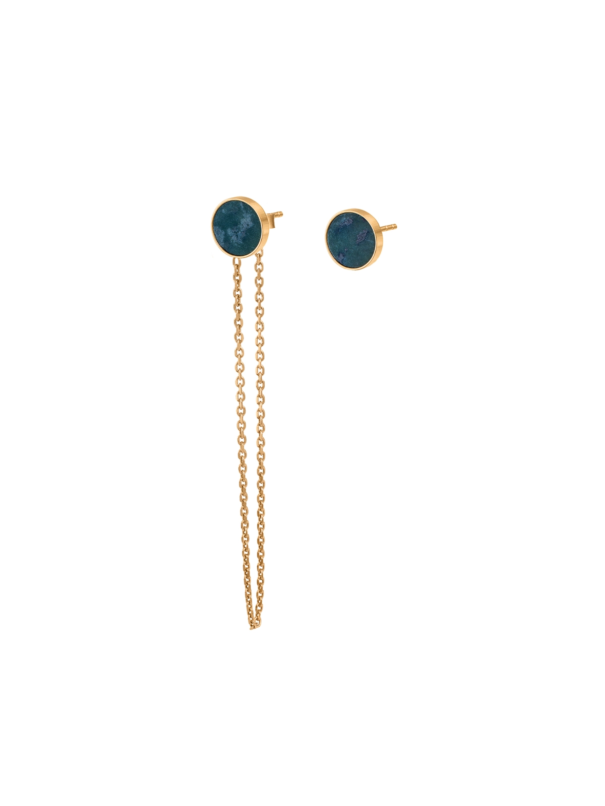 Kolczyki asymetryczne z łańcuszkiem i nefrytem złote