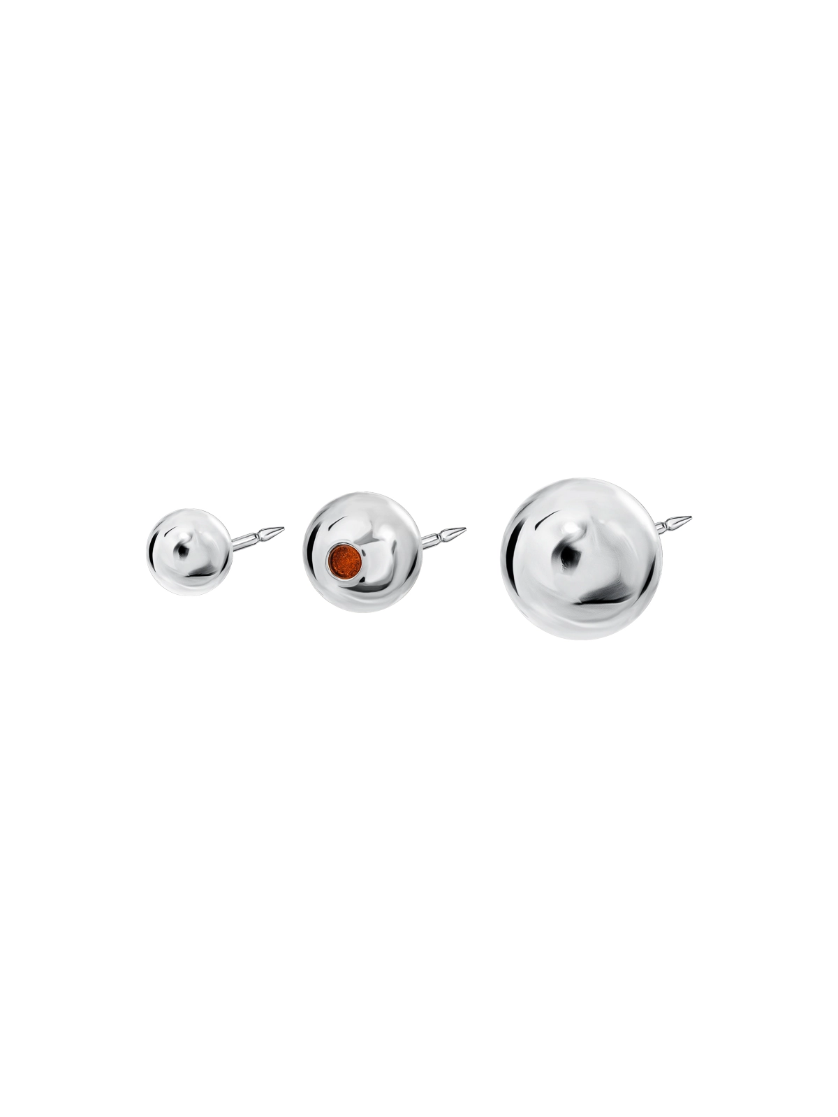 Zestaw trzech broszek o kulistych formach to współczesna interpretacja klasyki, która przyciąga wzrok czystością linii i szlachetnością materiałów. Jedna z kulek została ozdobiona bursztynem bałtyckim w koniakowym odcieniu, dodając całości ciepłego akcentu. Broszki możesz nosić razem lub osobno – układając je w dowolnej kompozycji.