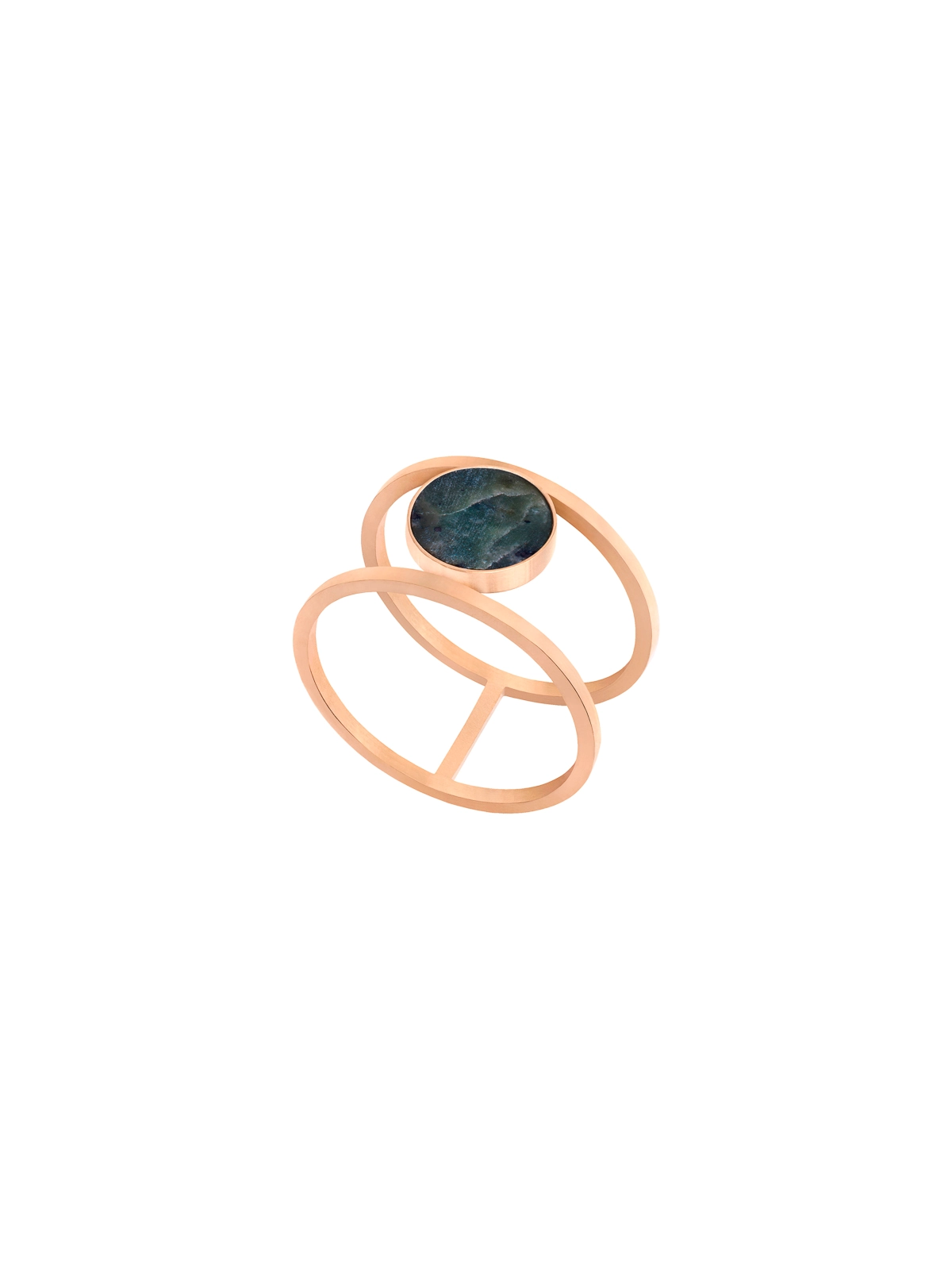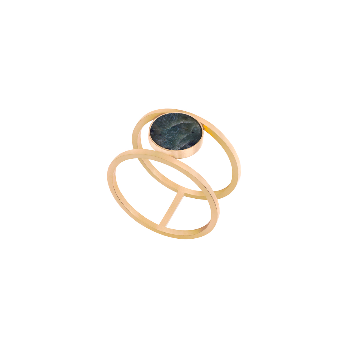 Pierścionek z zielonym nefrytem pozłacany – podwójna obrączka