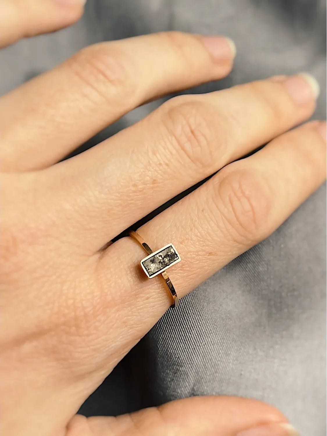 Każdy fragment meteorytu ma inną strukturę, inkluzje, mikropęknięcia a jego barwa może z czasem ewoluować – dlatego każdy pierścionek jest niepowtarzalny. To talizman z kosmosu dla Ciebie lub na prezent, który niesie emocje. Może być też pięknym symbolem Twojej miłości, która przekracza granice – również te ziemskie.