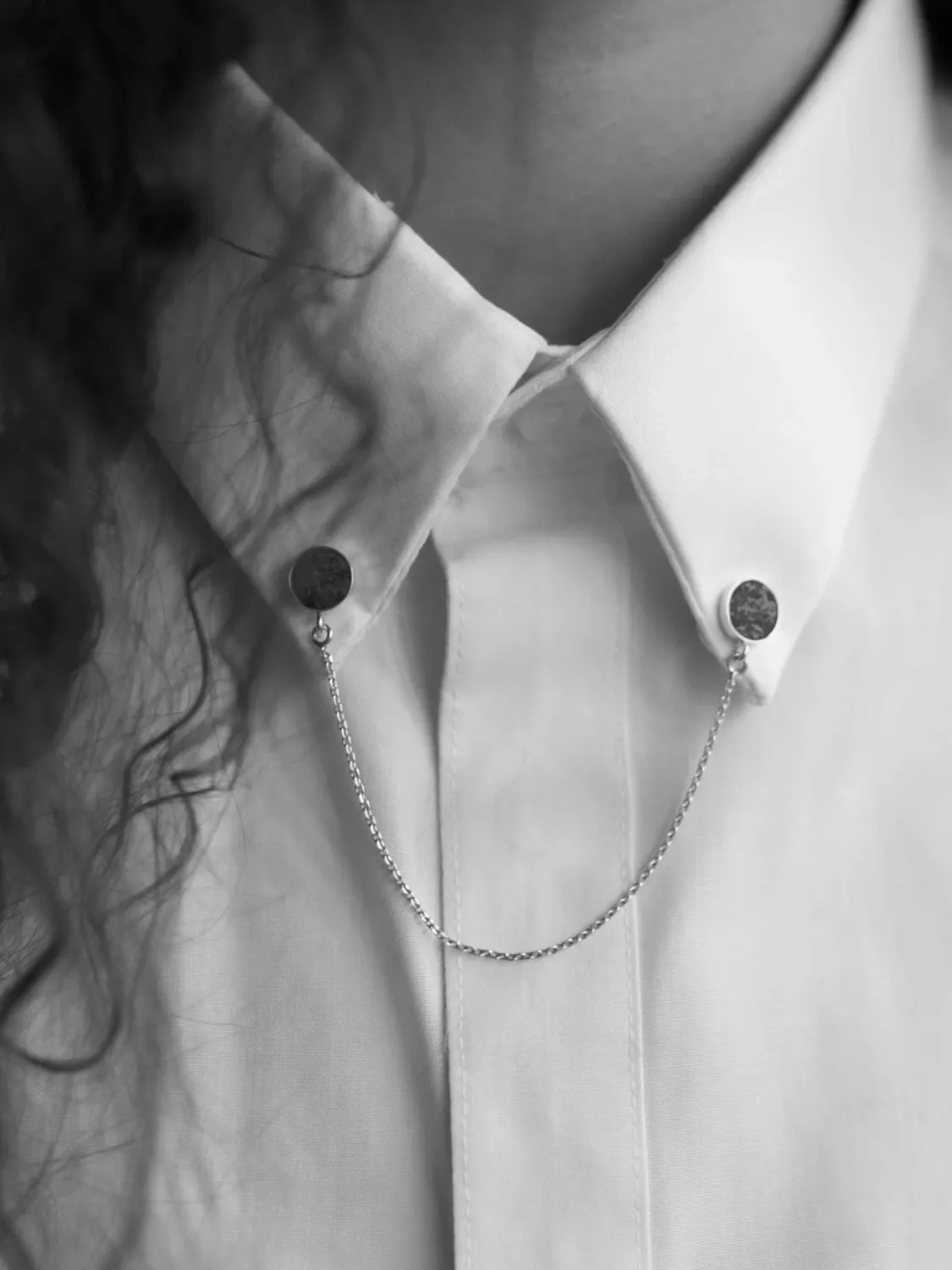 Jeśli szukasz biżuterii, która przełamuje schematy, ta przypinka z łańcuszkiem będzie doskonałym wyborem. Znakomicie prezentuje się przypięta do kołnierzyka koszuli, ale równie dobrze sprawdzi się na swetrze, marynarce czy płaszczu. To mały dodatek, który zmienia całą stylizację.