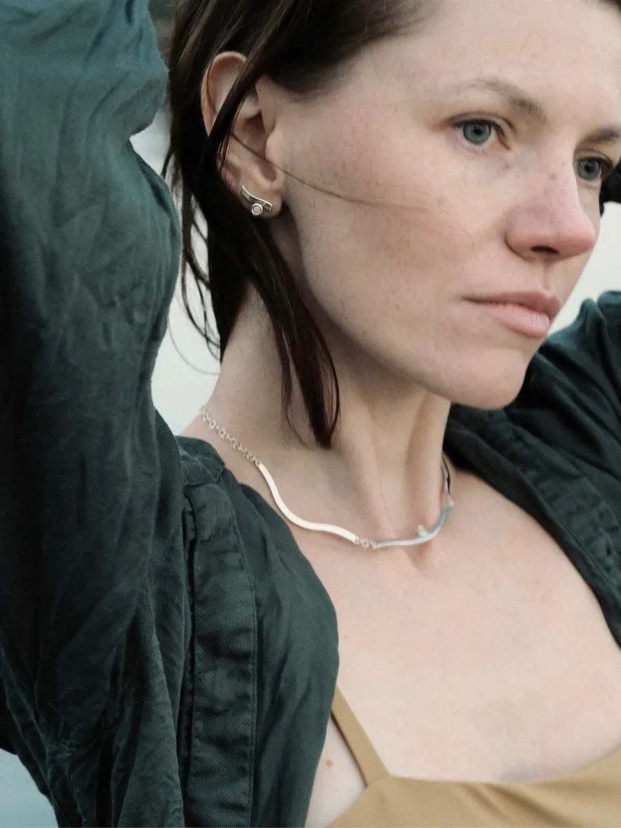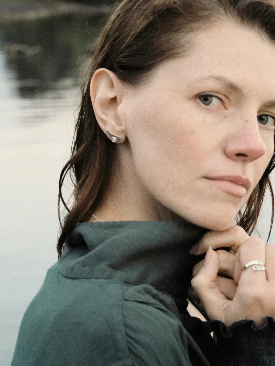 Te srebrne kolczyki z mlecznym bursztynem bałtyckim zachwycają oryginalnym wzorem, który odzwierciedla ruch fal. Ich subtelna forma efektownie układa się na uchu, łącząc naturalne piękno jasnego bursztynu ze współczesnym stylem. Idealne dla kobiet szukających przyciągających wzrok, a jednocześnie delikatnych dodatków do swojej stylizacji.