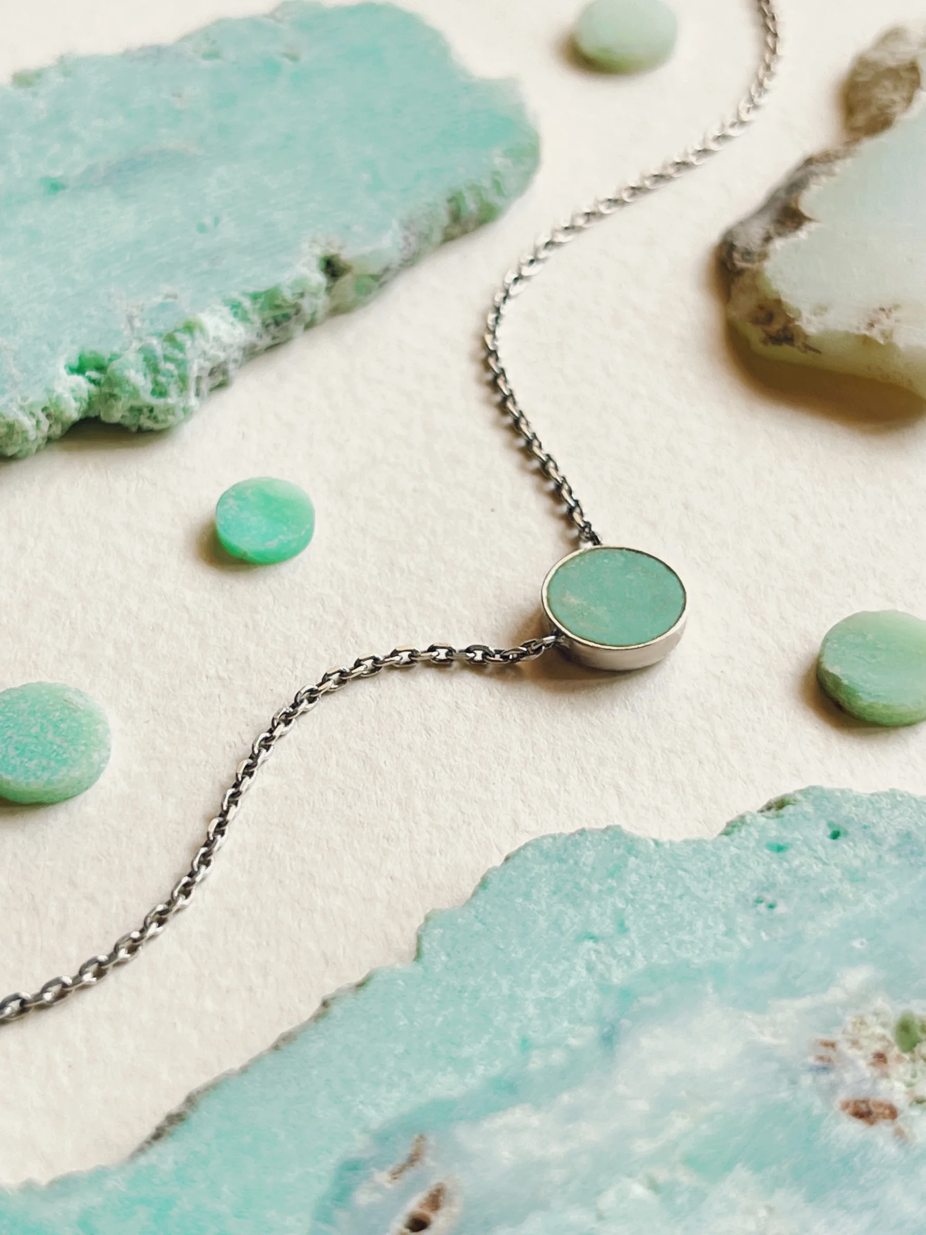 Srebrny naszyjnik z chryzoprazem – odrobina koloru na co dzień