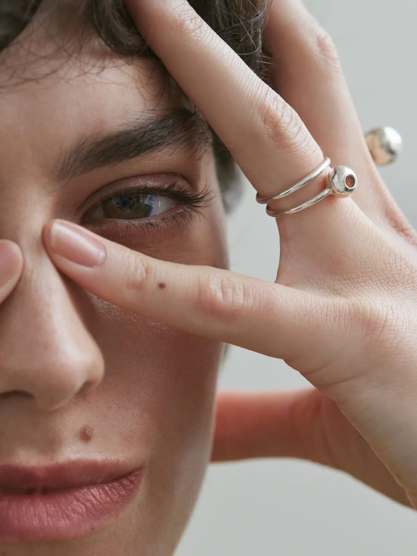 Pierścionek o spiralnym kształcie oplata palec otwartą linią, przyciągając uwagę kulką z bursztynem. To propozycja dla osób, które szukają niebanalnej formy – nowoczesnej, ale osadzonej w tradycji jubilerskiego rzemiosła.