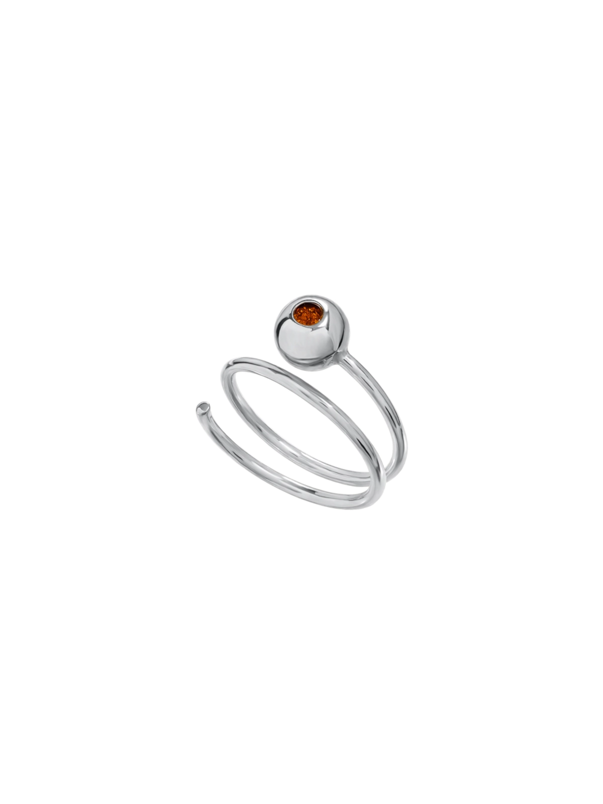 Pierścionek spirala z kulą i bursztynem srebrny