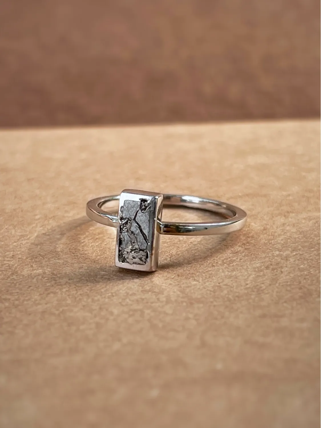 Pierścionek z meteorytem prostokątnym srebro