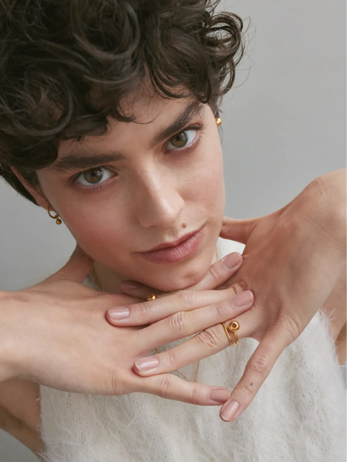 Spiralna forma tego pierścionka przyciąga wzrok lekkim ruchem i złotym blaskiem. W centrum kompozycji znajduje się koniakowy bursztyn o ciepłej barwie, uznawany za amulet szczęścia. Oryginalny układ obrączki to propozycja dla kobiet, które szukają czegoś innego niż klasyczne formy – nowoczesnego detalu, który podkreśli indywidualny styl.