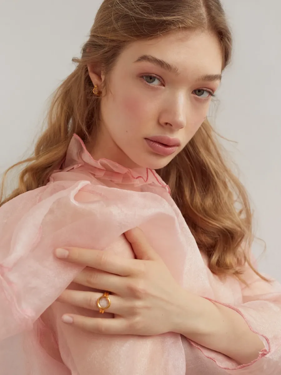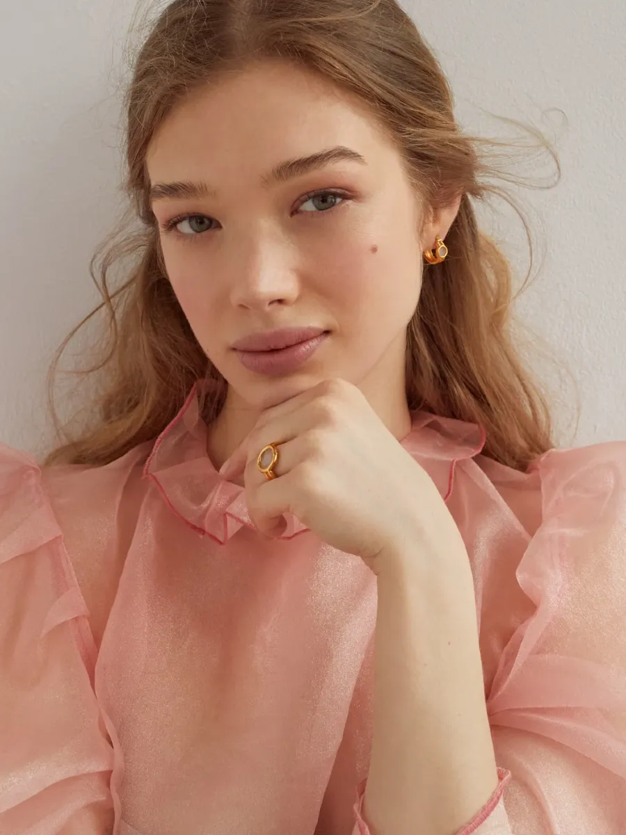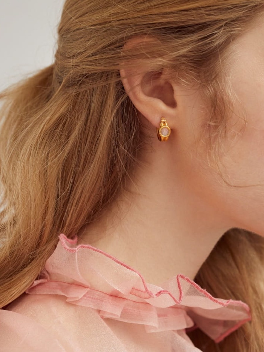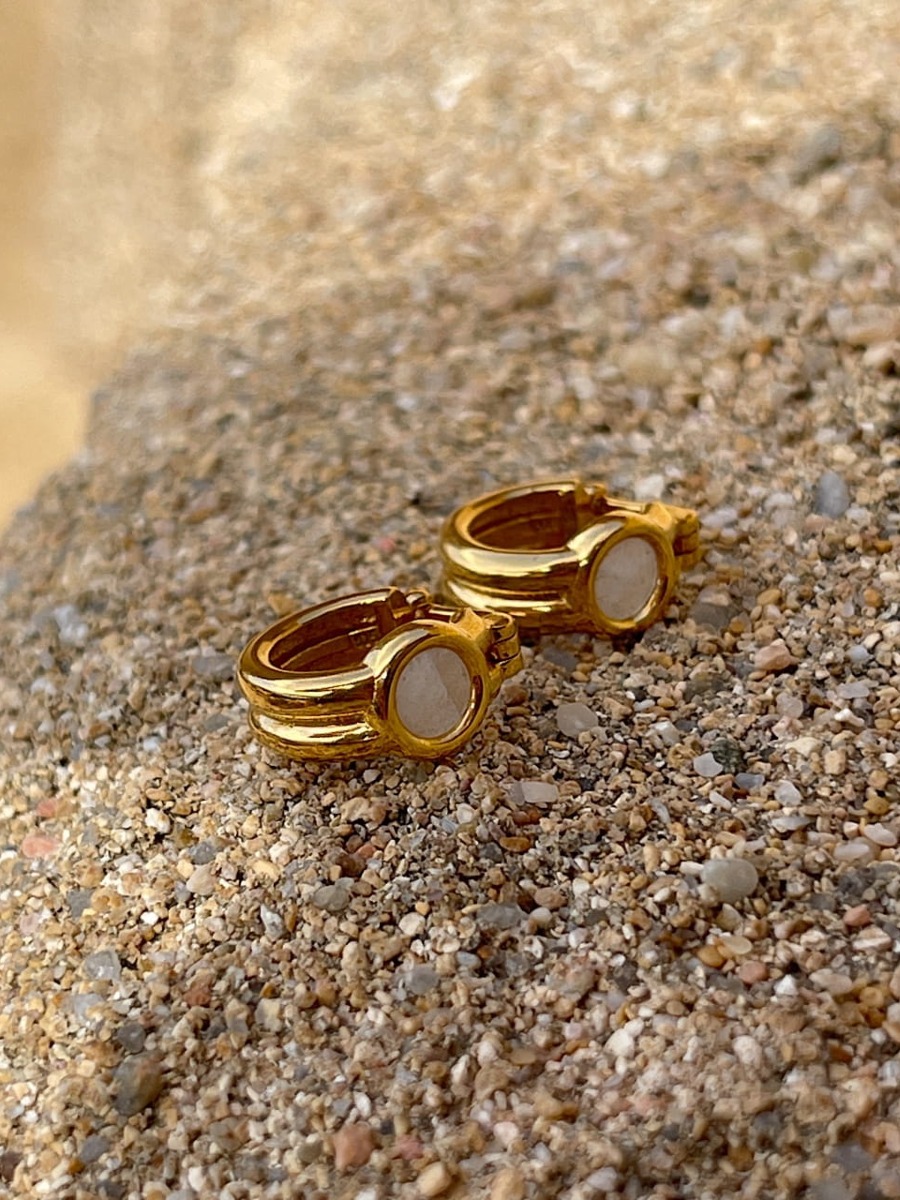 Złote kolczyki z kolekcji Etru to propozycja dla kobiet, które kochają biżuterię o wyważonej formie i głębokim znaczeniu. Ich geometryczne, miękkie linie o ciepłej barwie pięknie harmonizują z połyskiem kryształu górskiego – kamienia, który według tradycji wspiera klarowność myśli i wewnętrzną równowagę.