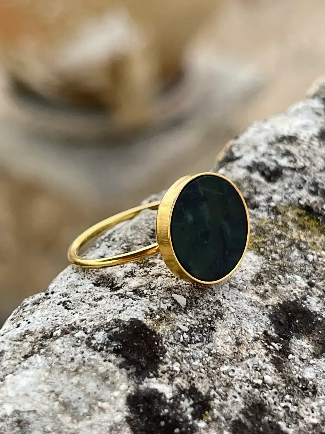 Złoty pierścionek z nefrytem – moc koloru w eleganckiej oprawie